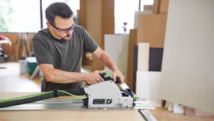 И в мастерской, и на объекте у заказчика даже большие панели можно раскраивать с нужной точностью. Благодаря системной оснастке Festool качество реза получается как на стационарном станке: Вы можете работать мобильно и вместе с тем получать резы без сколов точно по размеру.