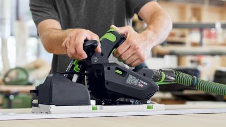 Теперь получение среза без сколов возможно уже с первого прохода. Встроенное устройство KickbackStop защищает Вас и заготовку от опасной отдачи, а благодаря системной оснастке Festool Вы можете работать мобильно и выполнять точные резы по заданным размерам. Работая пилой TSV 60 K на стройплощадке, Вы будете получать качество как в мастерской на стационарном станке.