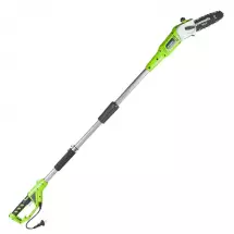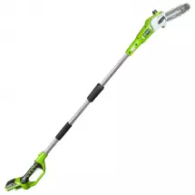 По сути, высоторез представляет собой небольшую цепную пилу с шиной от 10 до 25см на телескопической штанге длиной до нескольких метров. По типу двигателя высоторезы подразделяются на сетевые, аккумуляторные и бензиновые.